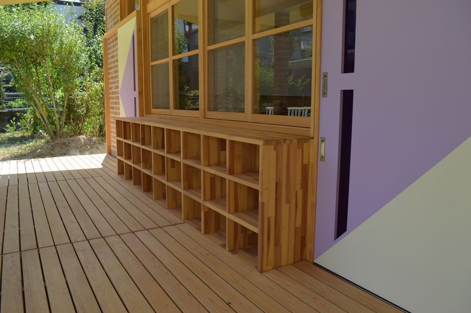 小さな子供たちが使用するため、木材の塗料種類やささくれなども十分に配慮して。